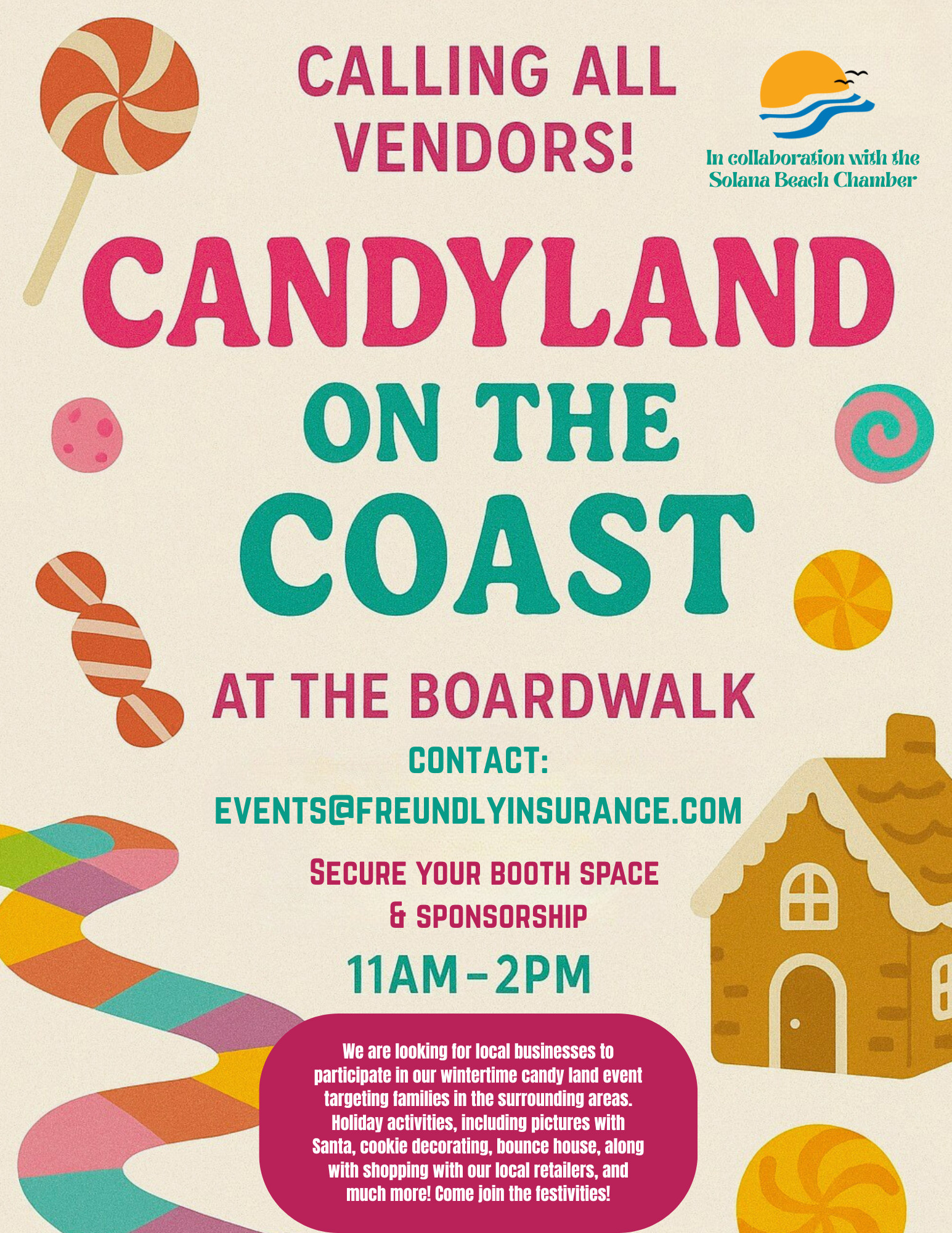 Be part of Solana Beach’s sweetest holiday event! Candyland on the Coast will transform The Boardwalk into a festive wonderland filled with local vendors, treats, and family fun on December 6th from 11–2 PM.