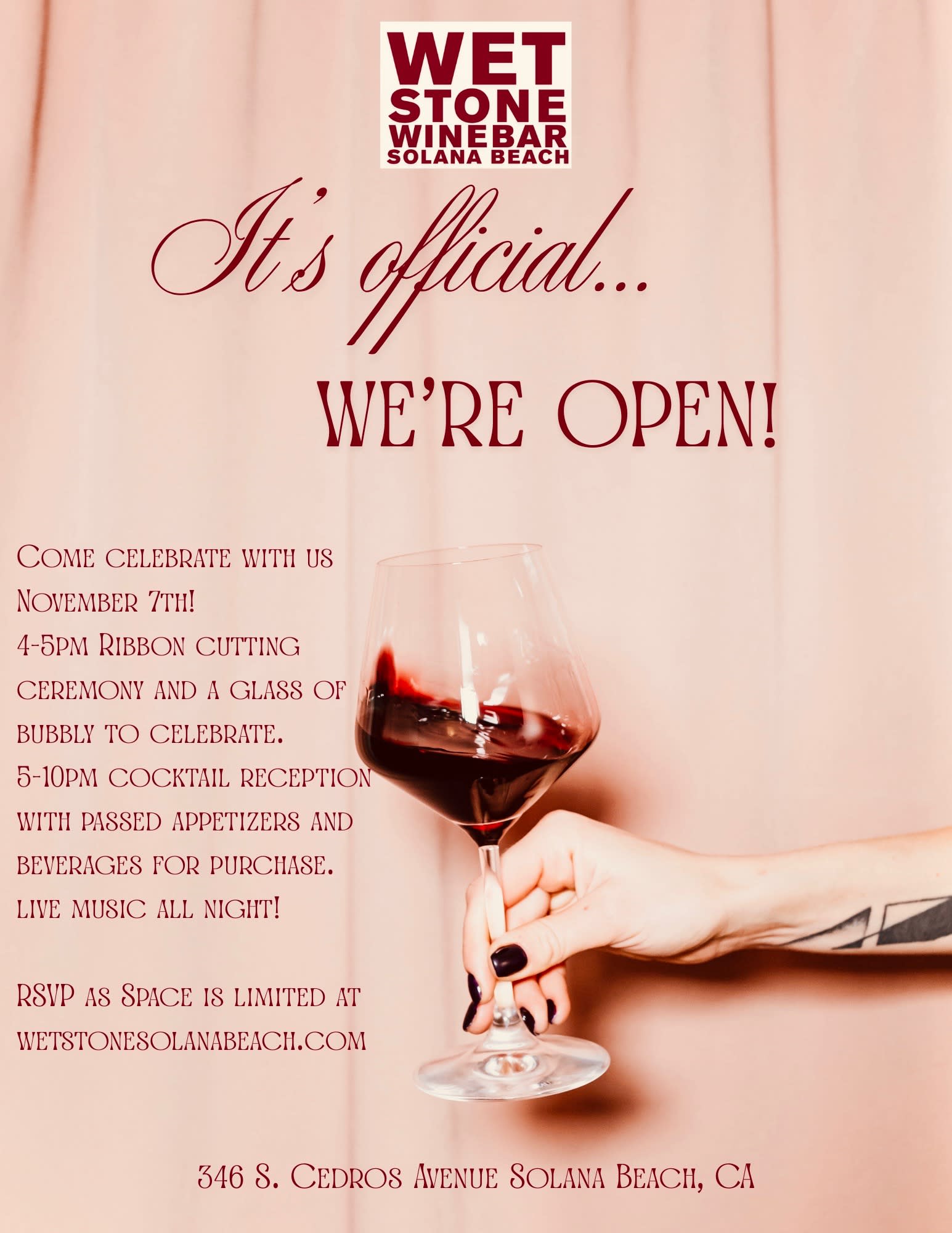 Come celebrate with us as we welcome WetStone Wine Bar to Solana Beach.